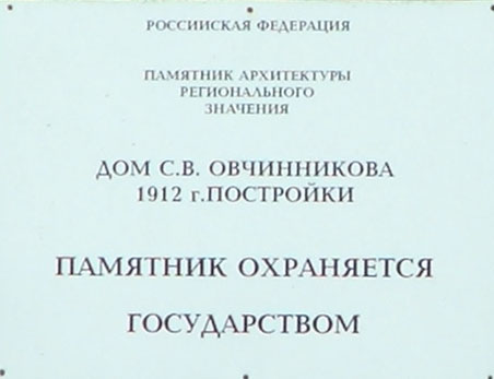 Местоположение: ул. Воскресенская, 37 Название: Дом С. В. Овчинникова Дата, автор: 1912 Категория охраны: М 109 Использование: Жилой дом