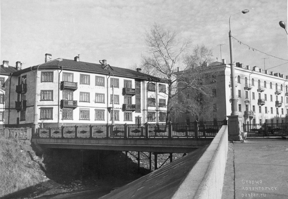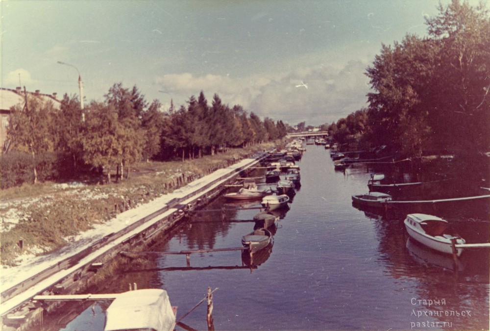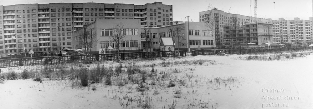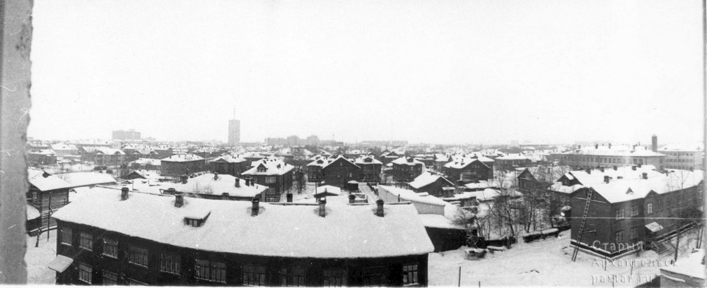 Слева еще нет нового здания 50 школы. По данным https://kontikimaps.ru/how-old/arkhangelsk, она появится только в 1990 году. Не видно и панельных домов, которые будут сданы к 1984 году. Снимок, вероятно, был сделан до 1980 года.